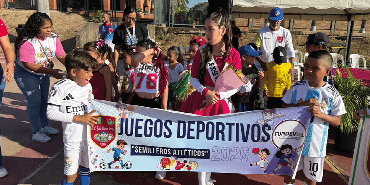 Con gran entusiasmo y energía deportiva, la comunidad de la U.E. “José Vicente Lecuna”, en Lomas de Funval, inauguró los Juegos Deportivos “Semilleros Atléticos 2026”, iniciativa de la Alcaldesa Dina Castillo, que a través de la Fundación para el Desarrollo Educativo de Valencia, FUNDEVAL y el Instituto Autónomo Municipal del Deporte, INDEVAL, busca fomentar la convivencia y los valores en los niños y niñas de Valencia.